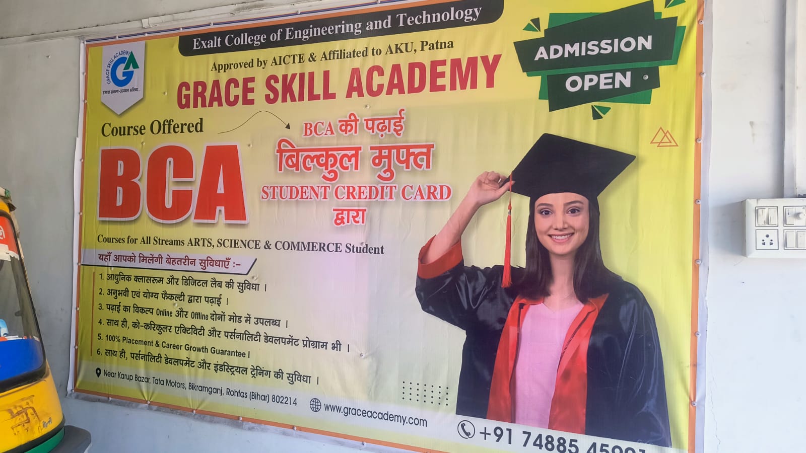 Exalt Student Counseling Center at Grace Skill Academy — Opp. Nehru College, Dehri on Sone, Rohtas, Bihar 821305 (near Karup Bazar, Tata Motors, Bikramganj Road).